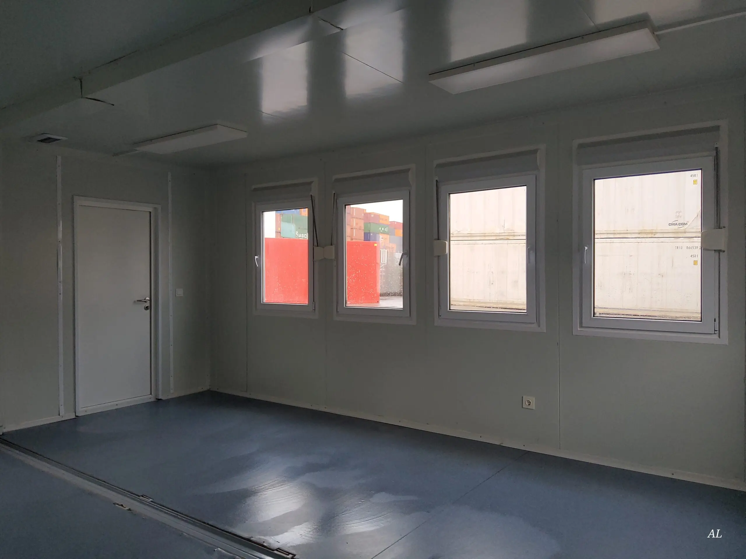 Die Duo-Anlage besteht aus zwei miteinander verbundenen 20 Fuß Containern und bietet großzügige Innenräume, die individuell an die Bedürfnisse Ihrer Arbeitsumgebung angepasst werden können. Die Anlage ist isoliert, elektrifiziert und sofort einsatzbereit.